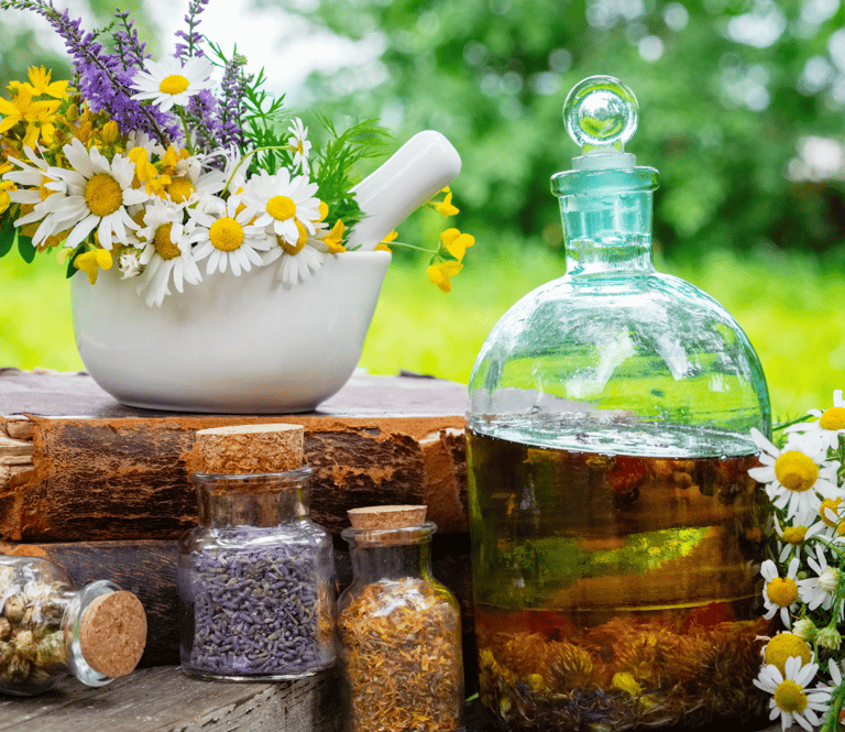 La phytologie: Utilisation de plantes sèches ou fraîches, des bourgeons de plantes, des eaux florales, des huiles essentielles en fonction de leurs propriétés et du résultat escompté.
